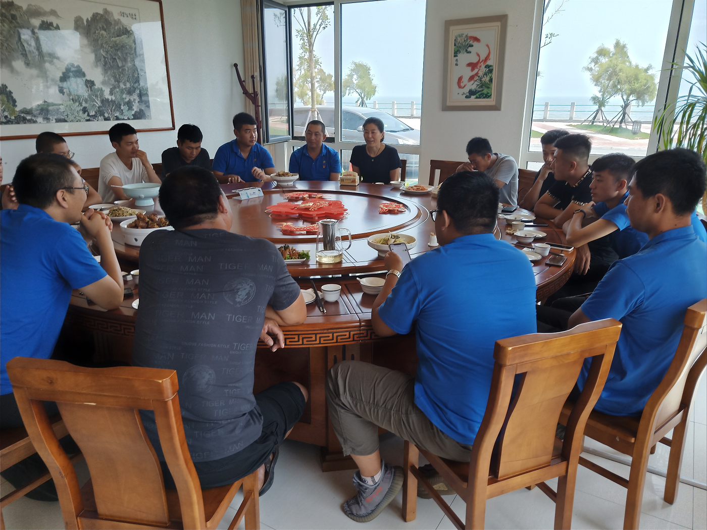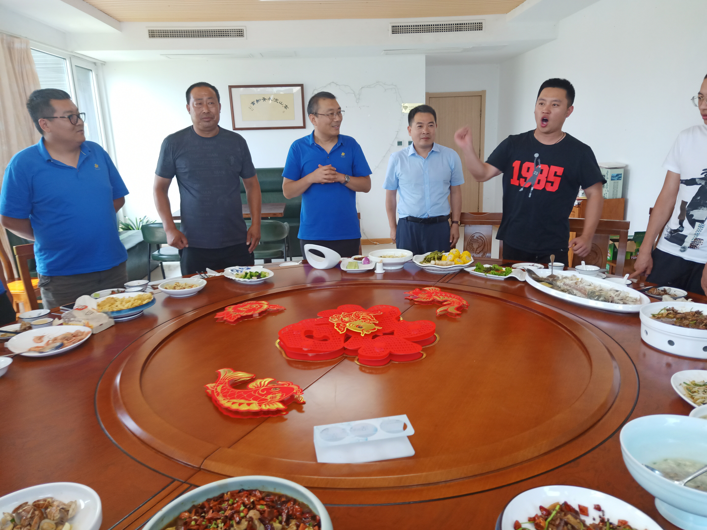 座談會結(jié)束之后,中午各領(lǐng)導(dǎo)和退伍軍人們一起去聚餐,加強彼此的溝通了解,歡度建軍節(jié)。聚餐時,大家其樂融融,歡聲笑語一片。尤其是一集團(tuán)山水麗景安全員邵帥的歌唱表演,帶動了全場的熱烈氣氛。