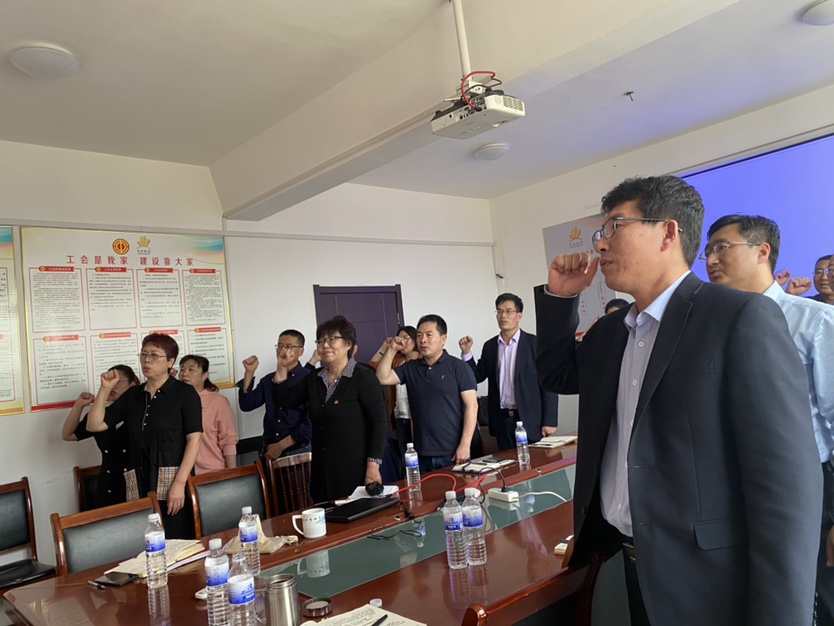 在學(xué)習(xí)之前,黨支部組織委員丁樹連同志帶領(lǐng)大家重溫入黨誓詞。