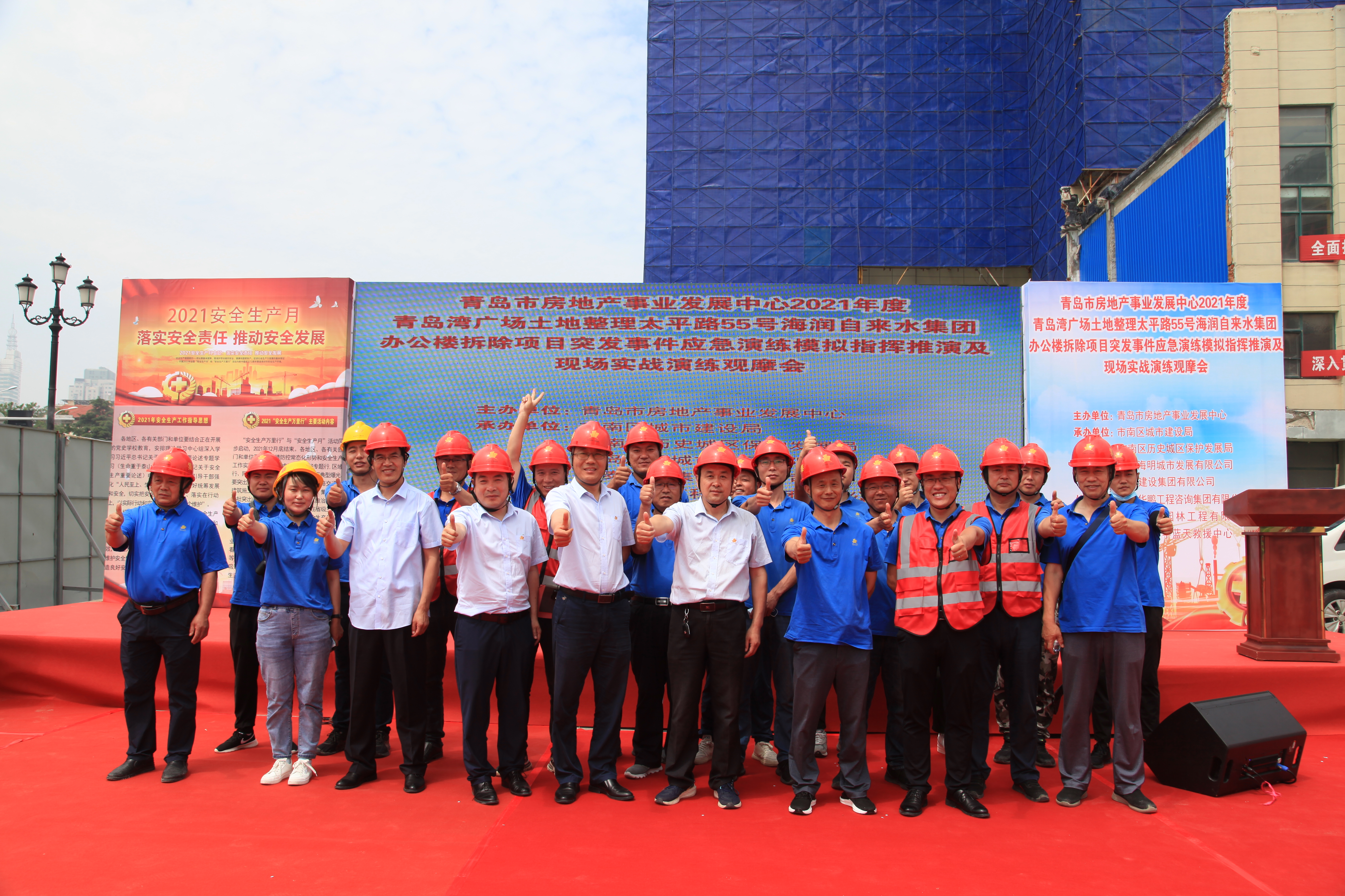 2021年6月18日榮泰建設(shè)集團(tuán)按照市住建局《全市住建系統(tǒng)2021年“安全生產(chǎn)月”活動實施方案》要求和市房地產(chǎn)事業(yè)發(fā)展中心拆除工程應(yīng)急演練工作計劃安排,舉行“落實企業(yè)安全和應(yīng)急責(zé)任、推動安全發(fā)展”為主題的青島灣廣場土地整理太平路55號海潤自來水集團(tuán)辦公樓拆除工程坍塌事故應(yīng)急救援演練活動觀摩會。