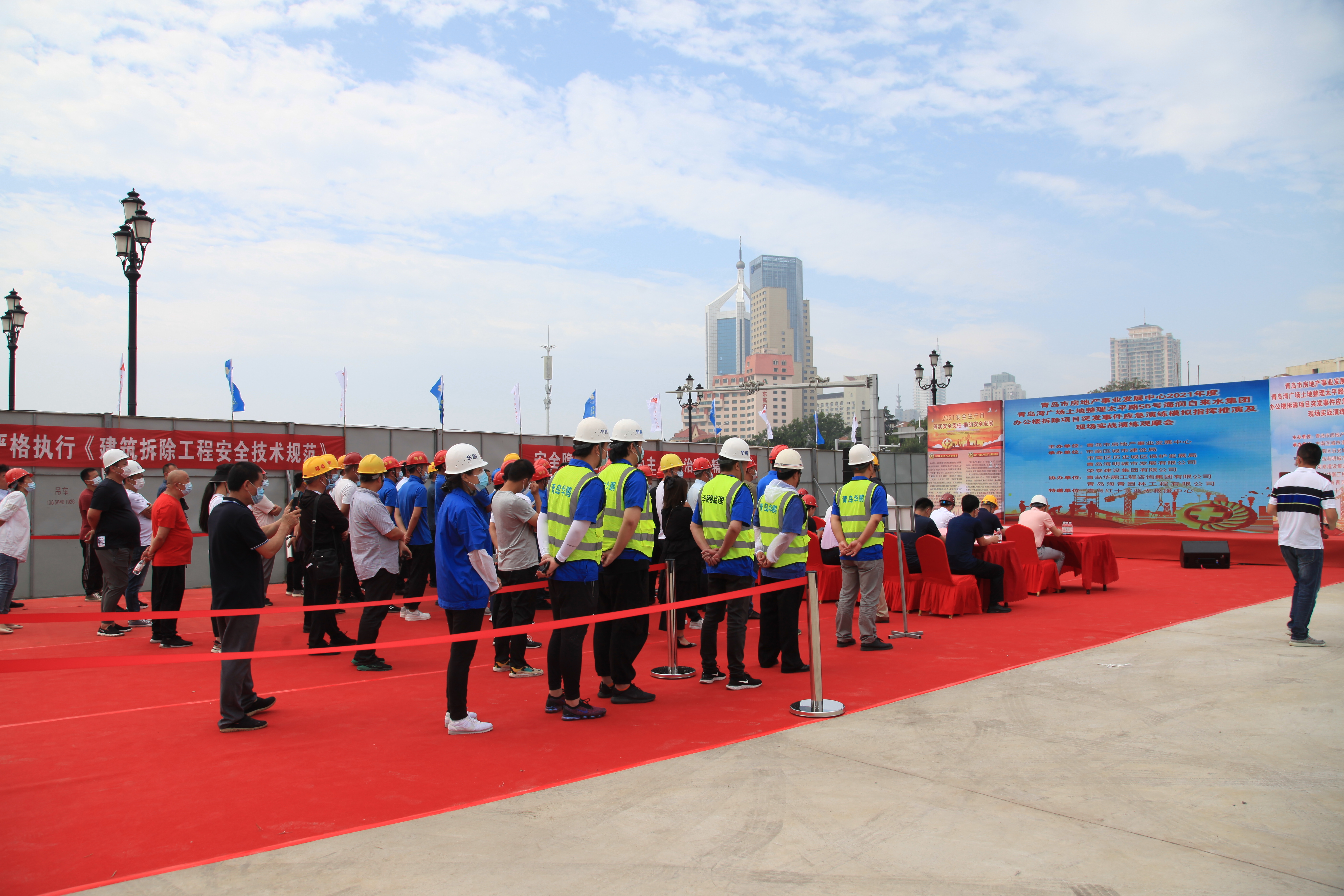本次活動由青島市房地產(chǎn)事業(yè)發(fā)展中心主辦,由榮泰建設(shè)集團(tuán)有限公司承辦,并特邀青島紅十字藍(lán)天救援中心作為市級應(yīng)急救援隊伍。青島市房地產(chǎn)事業(yè)發(fā)展中心副主任徐強、市南區(qū)住房和城鄉(xiāng)建設(shè)局局長張濤、市南區(qū)歷史城區(qū)保護(hù)發(fā)展局副局長丁海濤、青島海明城市發(fā)展有限公司副總經(jīng)理李耀華、青島華鵬工程咨詢集團(tuán)有限公司總經(jīng)理匡廣兵、榮泰建設(shè)集團(tuán)有限公司副總裁安伯祥以及各市區(qū)拆除管理部門負(fù)責(zé)人,青島東捷建設(shè)、青島膠州灣建設(shè)、青島一建集團(tuán)、中國十七冶集團(tuán)、前盛業(yè)建設(shè)、青島建國集團(tuán)、青建集團(tuán)、旭華建設(shè)集團(tuán)、青島誠通建筑、中鐵城建等43家拆除施工企業(yè)代表參加本次演練活動。