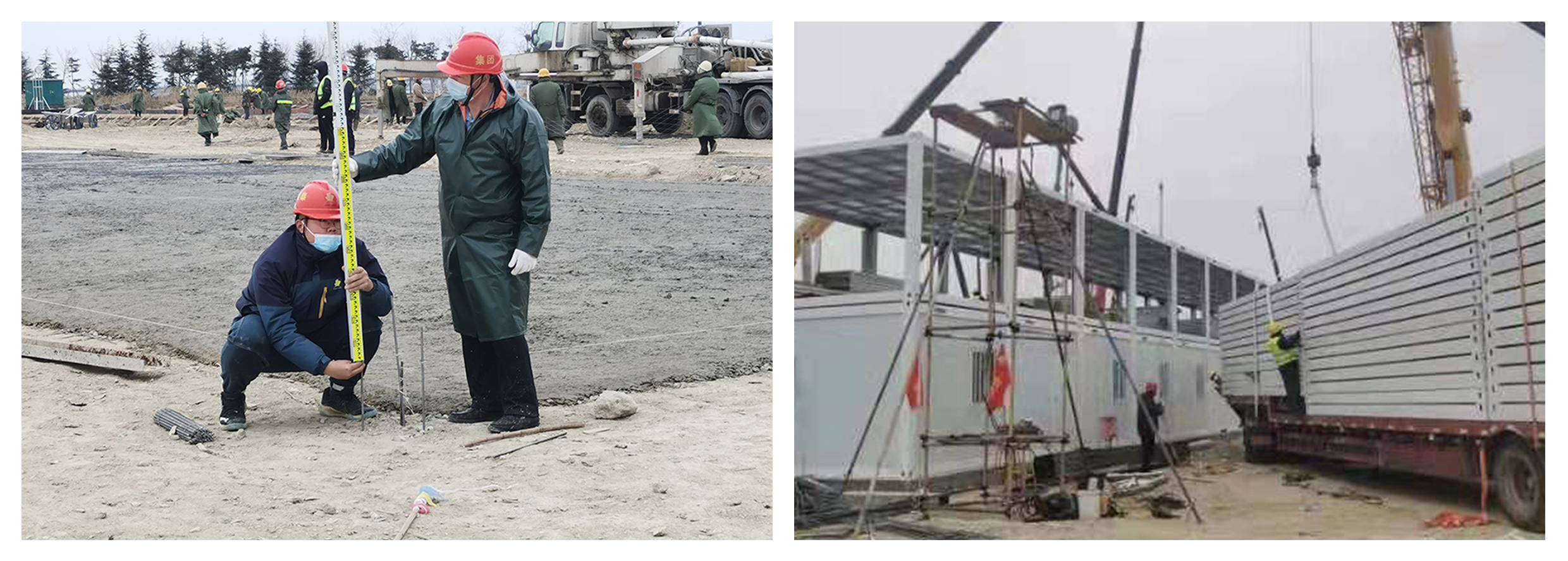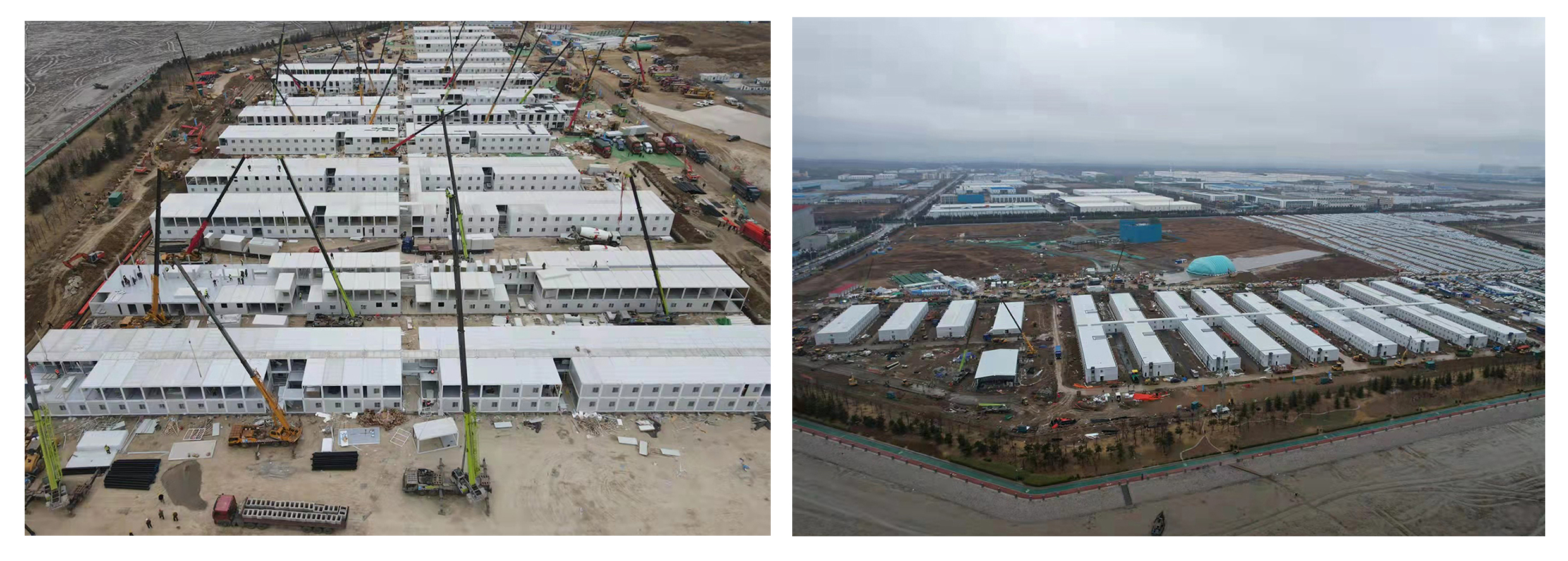 海灣健康驛站項(xiàng)目總建筑面積約35908.8平方米,建筑包括隔離客房樓2棟(共1000間),面積29794.5平方米;綜合樓1棟,面積1620平方米;服務(wù)人員宿舍2棟,面積2980.8平方米;物資配餐樓1棟,面積810平方米;接待中心1棟,面積54平方米;消防水泵房、垃圾間等其他配套輔助用房若干,面積649.5平方米。健康驛站建設(shè)工期短、標(biāo)準(zhǔn)高、任務(wù)重,全體參建者充分發(fā)揮“鐵軍作風(fēng)”和“工匠精神”,拿出“不服輸”的勇氣和“沒(méi)有借口”的行動(dòng)力,調(diào)集400余人日夜兼程奮戰(zhàn)在施工一線,上百臺(tái)施工機(jī)械輪流作業(yè)不停歇。