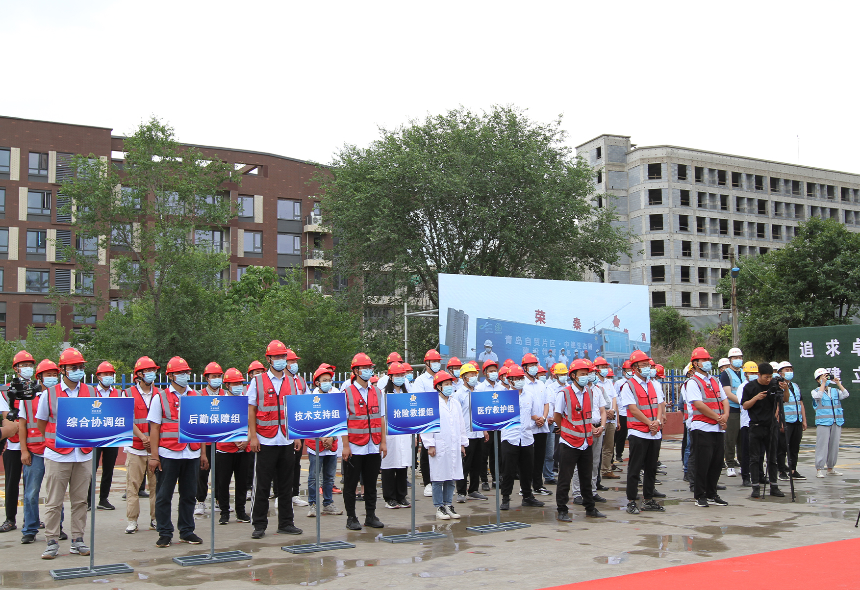 參加本次應(yīng)急演練的領(lǐng)導(dǎo)嘉賓有青島自貿(mào)片區(qū)規(guī)建部副部長(zhǎng)周彥霖、青島西海岸新區(qū)住房和城鄉(xiāng)建設(shè)局建筑業(yè)管理科科長(zhǎng)張煥欣、榮泰建設(shè)集團(tuán)有限公司副總裁苗增剛、山東興華建設(shè)集團(tuán)有限公司副總裁陳相宇、青島??匚磥沓情_發(fā)有限公司經(jīng)理孫鈺斐、青島建通浩源集團(tuán)有限公司副總裁徐明明,以及青島自貿(mào)片區(qū)規(guī)建部、榮泰建設(shè)集團(tuán)有限公司、山東興華建設(shè)集團(tuán)有限公司等單位相關(guān)人員。
