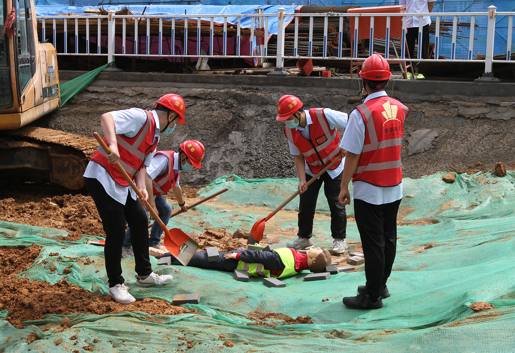 今年六月是第21個(gè)全國(guó)“安全生產(chǎn)月”,為了響應(yīng)國(guó)家、省、市有關(guān)部署,貫徹落實(shí)《青島西海岸新區(qū)2022年“安全生產(chǎn)月”活動(dòng)實(shí)施方案》的文件精神。6月17日上午,由青島西海岸新區(qū)住房和城鄉(xiāng)建設(shè)局、青島自貿(mào)片區(qū)·中德生態(tài)園聯(lián)合榮泰建設(shè)集團(tuán)有限公司,在中德未來城博士邨建設(shè)二期項(xiàng)目順利舉行了“基坑坍塌事故應(yīng)急救援”現(xiàn)場(chǎng)演練活動(dòng)。