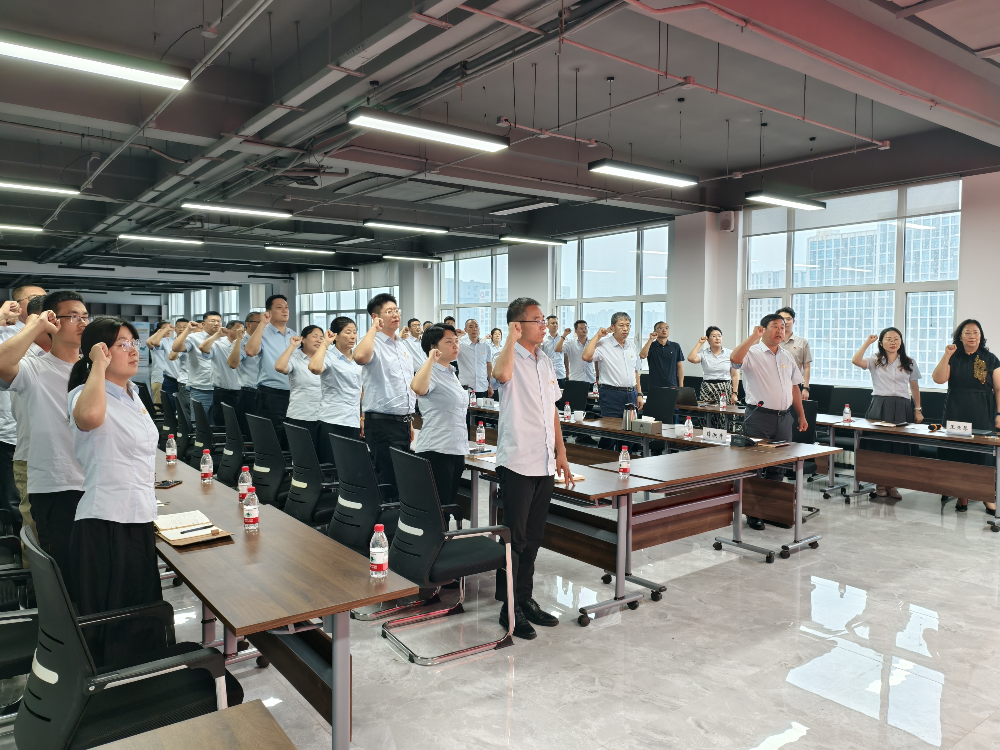 活動在莊嚴(yán)熱烈的氛圍中拉開序幕。在集團(tuán)黨支部副書記薛洪升的領(lǐng)誓下,全體黨員面向鮮紅黨旗,高舉右拳,重溫入黨誓詞。鏗鏘誓言響徹會場,這不僅是對初心使命的回望,更是面對挑戰(zhàn)時對黨忠誠、對事業(yè)擔(dān)當(dāng)的莊嚴(yán)宣示,提醒每名黨員牢記身份,永葆本色