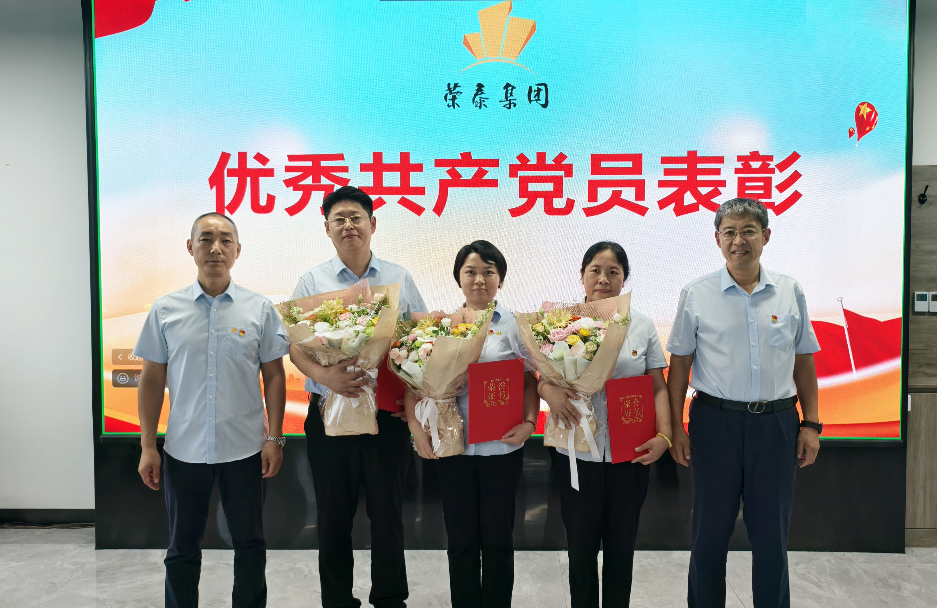 莊重的重溫誓詞后,大會表彰了過去一年在崗位上迎難而上、表現(xiàn)突出的優(yōu)秀共產(chǎn)黨員。張濟(jì)春、王敏、王翠三位同志榮獲榮泰集團(tuán)“2024年度-2025年度優(yōu)秀共產(chǎn)黨員”榮譽(yù)稱號。集團(tuán)黨支部書記、董事長薛鵬和集團(tuán)總裁王洪為他們頒發(fā)榮譽(yù)證書。工程集團(tuán)張濟(jì)春能吃苦、能戰(zhàn)斗,主動迎接困難和挑戰(zhàn),具備強(qiáng)烈的擔(dān)當(dāng)精神、頑強(qiáng)的攻堅作風(fēng)和過硬的專業(yè)能力;招標(biāo)采購中心王敏推動跨部門協(xié)同攻堅,實現(xiàn)資產(chǎn)去化與資金回籠雙突破;財務(wù)部王翠業(yè)務(wù)過硬、任勞任怨,充分發(fā)揮傳幫帶作用。?他們以實際行動詮釋了“給年輕人以戰(zhàn)場,給奮斗者以褒獎,給奉獻(xiàn)者以榮光”的企業(yè)文化,為全體員工樹立了工作標(biāo)桿。