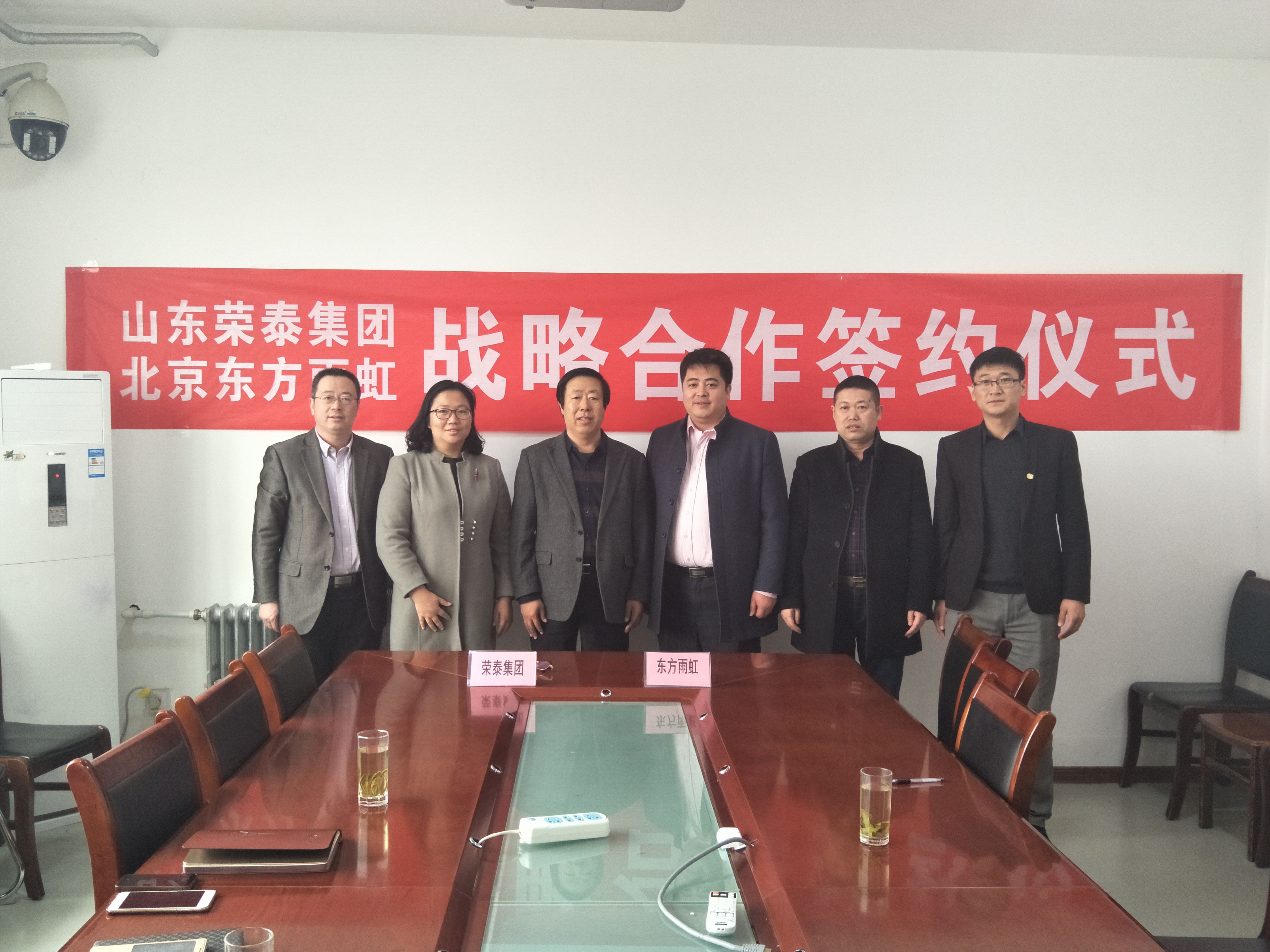 2017年03月11日,山東榮泰集團(tuán)與北京東方雨虹防水技術(shù)股份有限公司在集團(tuán)四樓會議室舉行戰(zhàn)略合作簽約儀式,集團(tuán)副總薛玉健與北京東方雨虹公司工程渠道事業(yè)部省總經(jīng)理姚云飛簽署了雙方戰(zhàn)略合作協(xié)議。