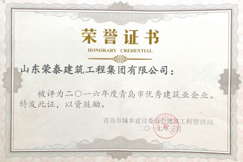 2016青島市優(yōu)秀建筑企業(yè)